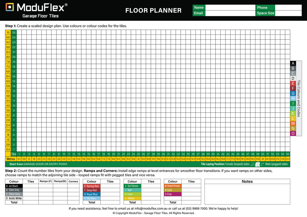 Craft your ideal space with ease using our A4-sized Floor Planner. Featuring accurately scaled gridlines, it simplifies the task of determining the precise number of tiles you need in each colour for your design.