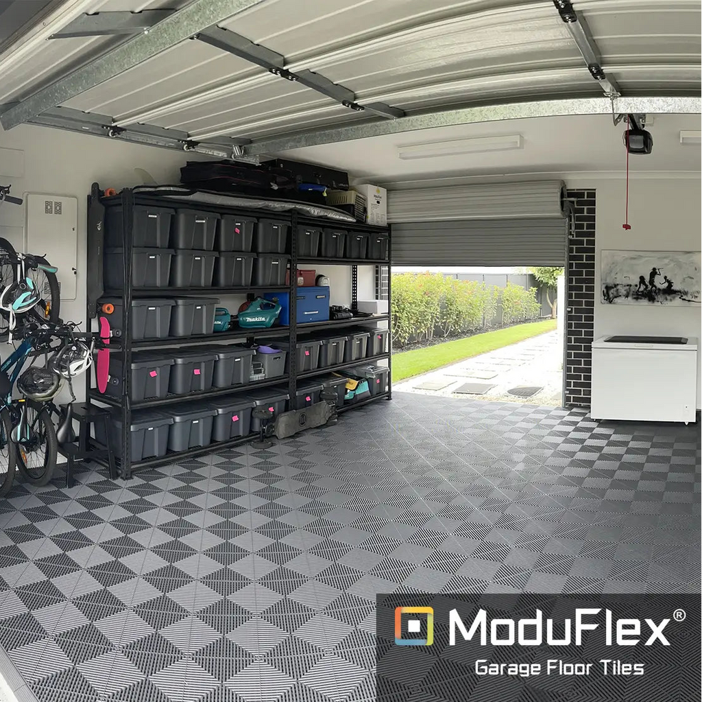 Transform your garage into a practical yet stylish space with the ModuFlex AirRib. These durable, slip-resistant tiles are perfect for heavy-duty use, resisting oil and heavy weight effortlessly. Customize your garage's look with various patterns and colors, making it more than just a storage area. Installation is a breeze with our DIY-friendly design, requiring no special tools. Create a garage that's not only functional but also a reflection of your personal style.