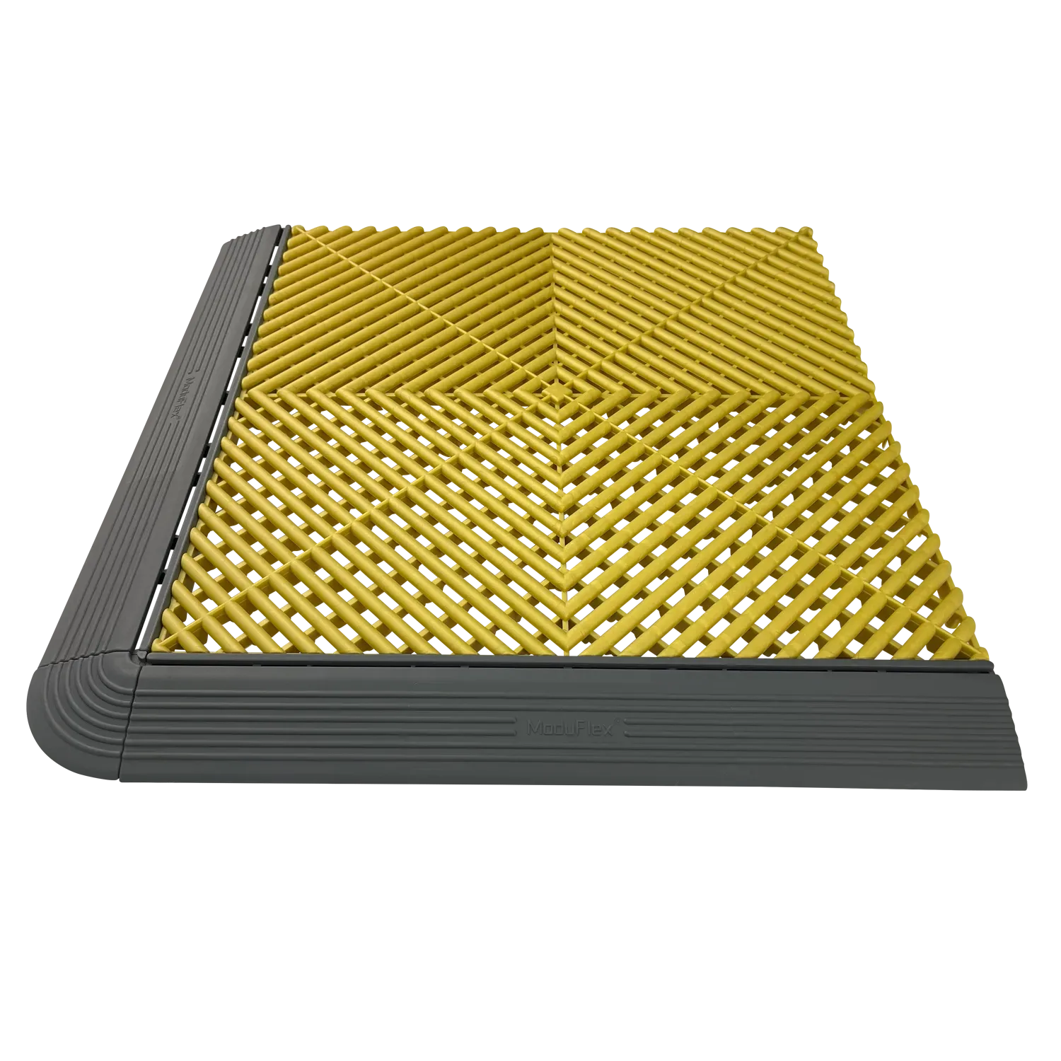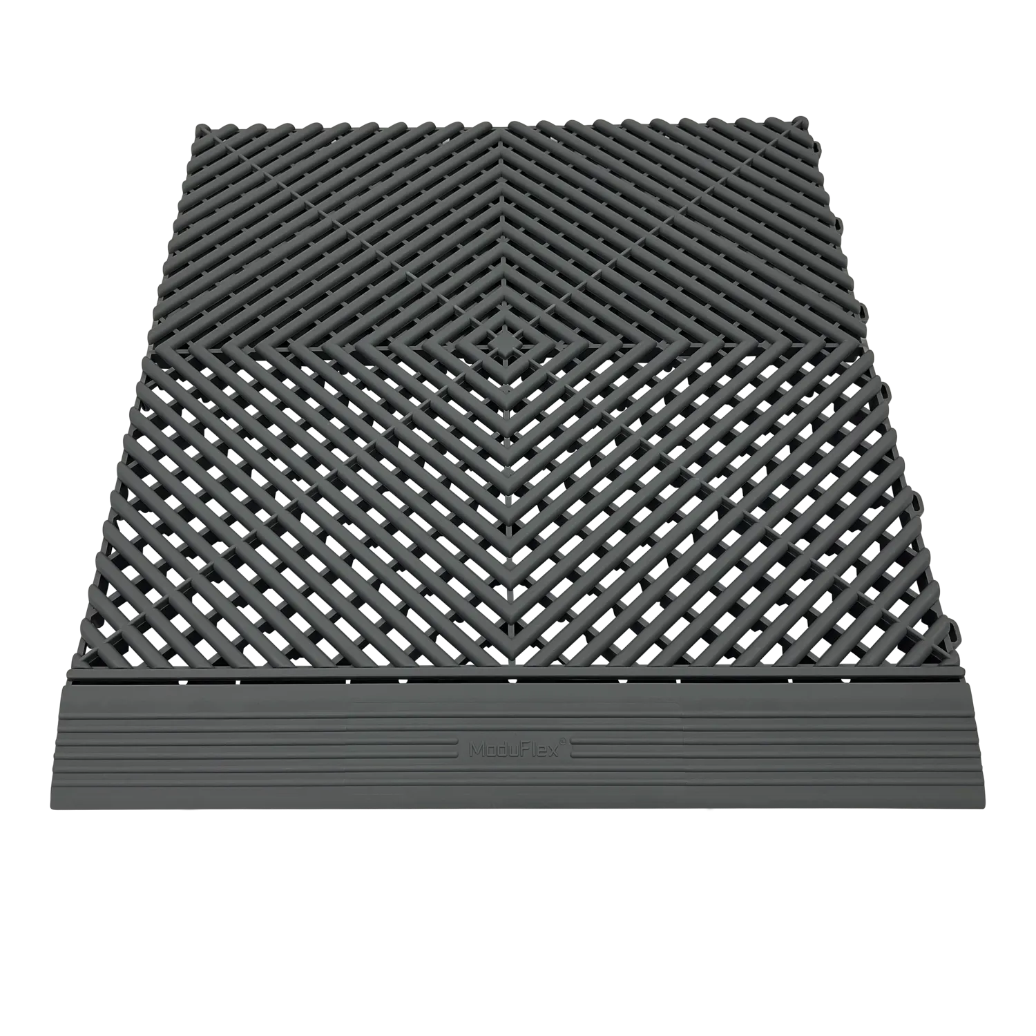 Based on ModuFlex’s garage flooring installation recommendations, ModuFlex recommends Looped Female Ramp edges for garage doors.