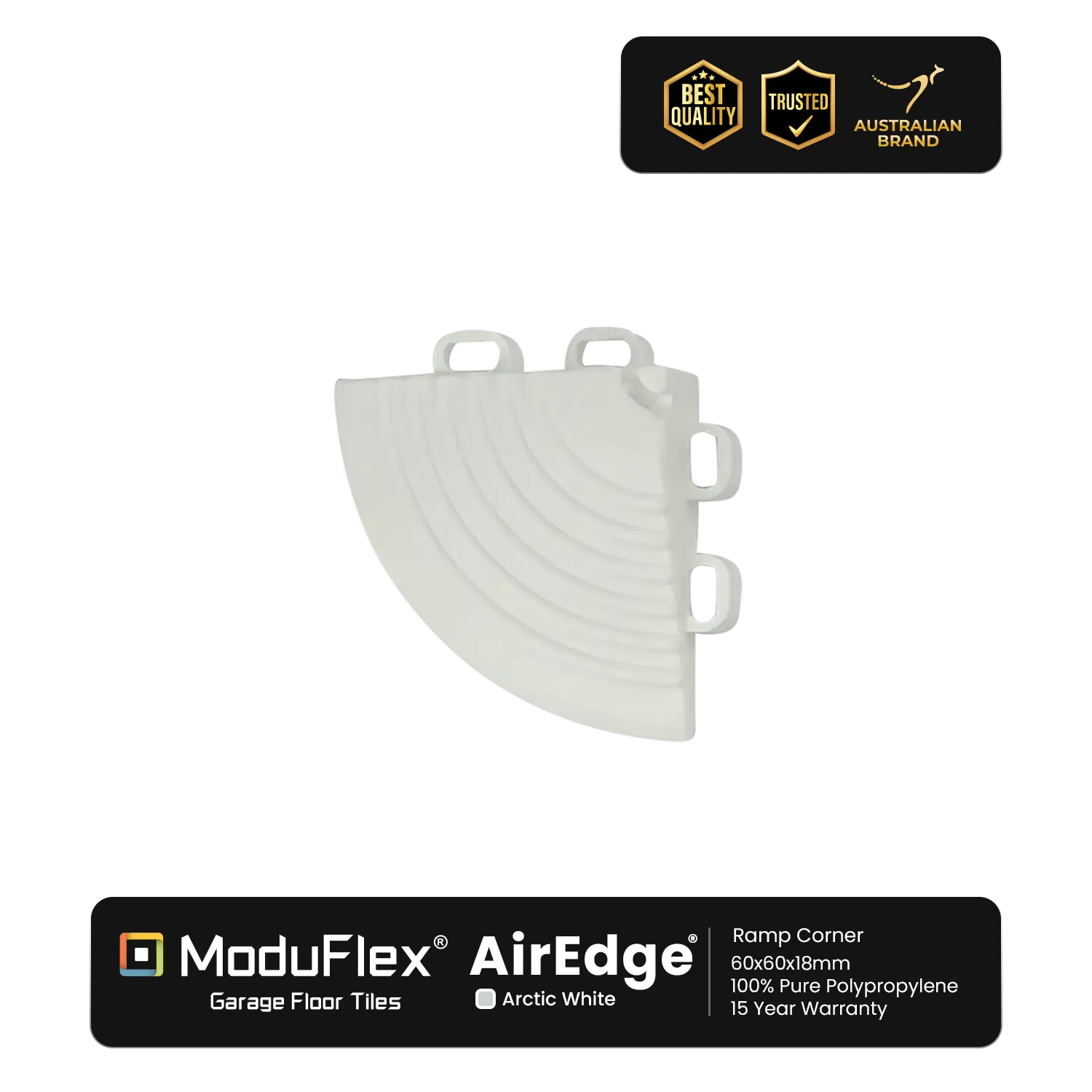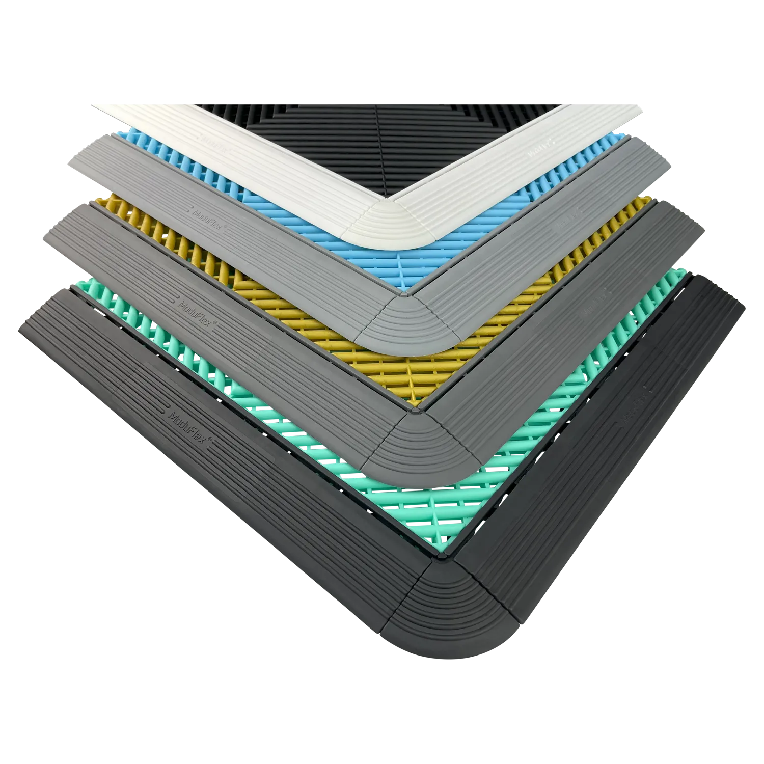 Effortlessly complement your flooring with ModuFlex AirEdge Ramp Corners. They snap onto the tiles, providing a smooth and cohesive transition for ramps and entryways.